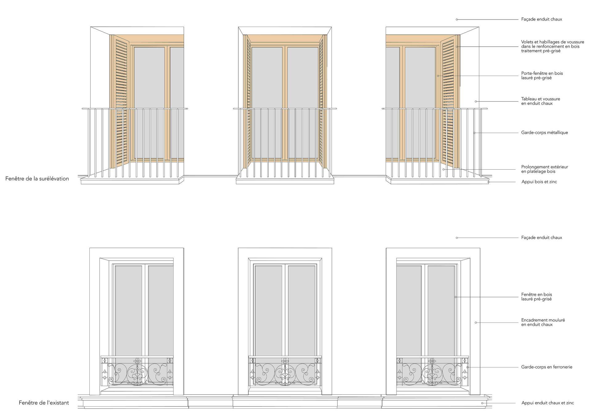 25 logements en restructuration et extension à Paris XIIe - Typologie des fenêtres en surélévation
