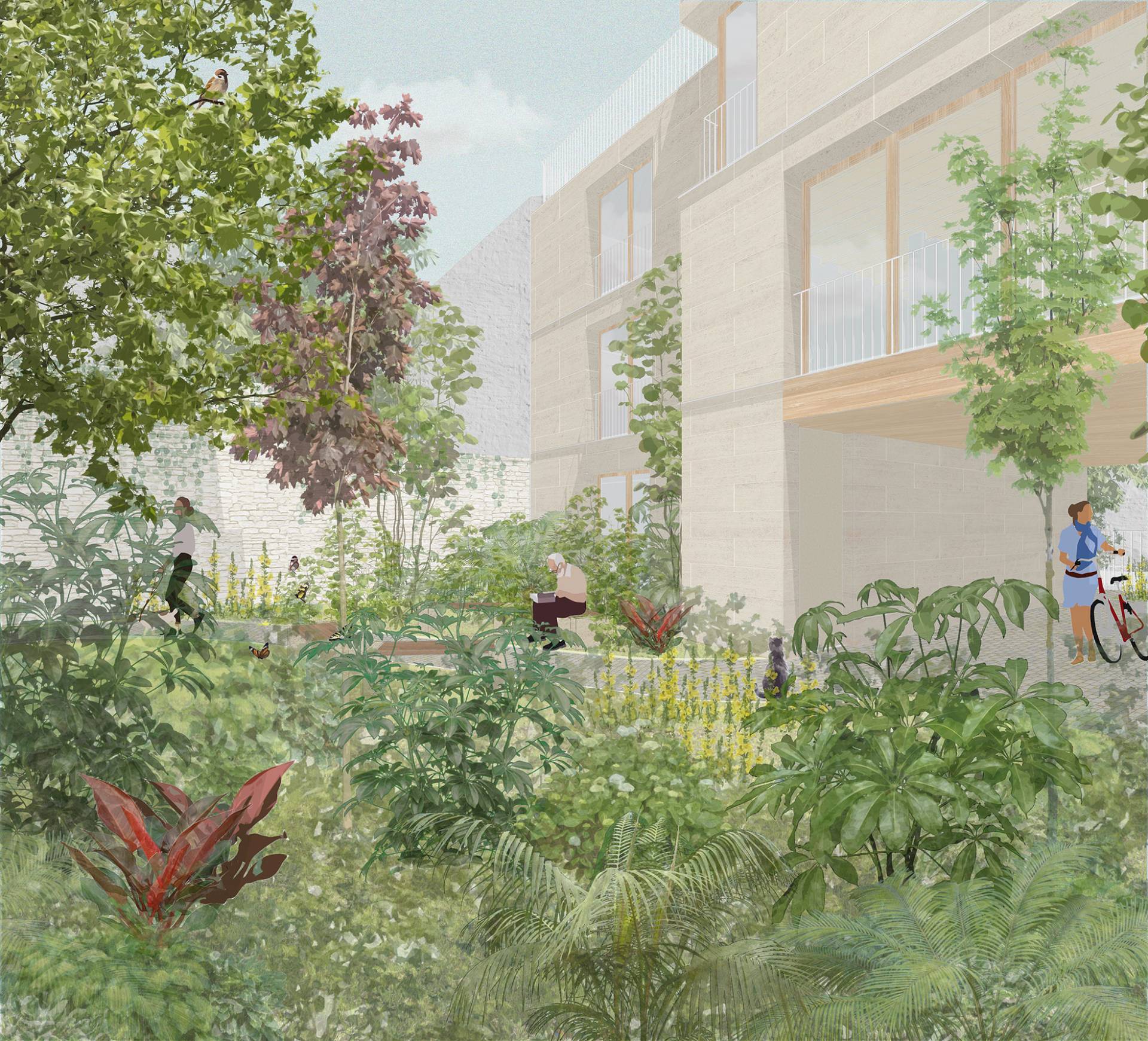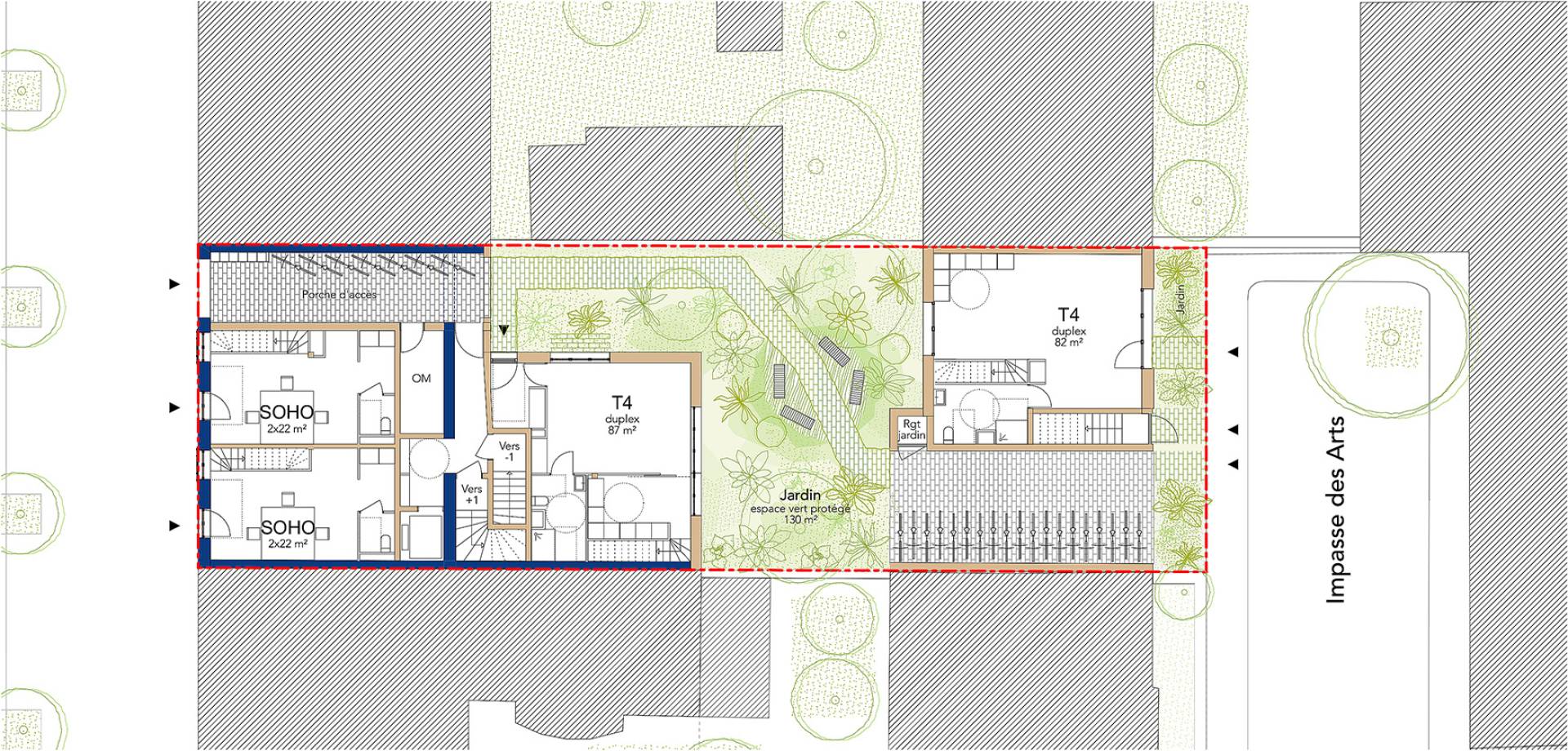25 logements en restructuration et extension à Paris XIIe - Espace vert au cœur du projet
