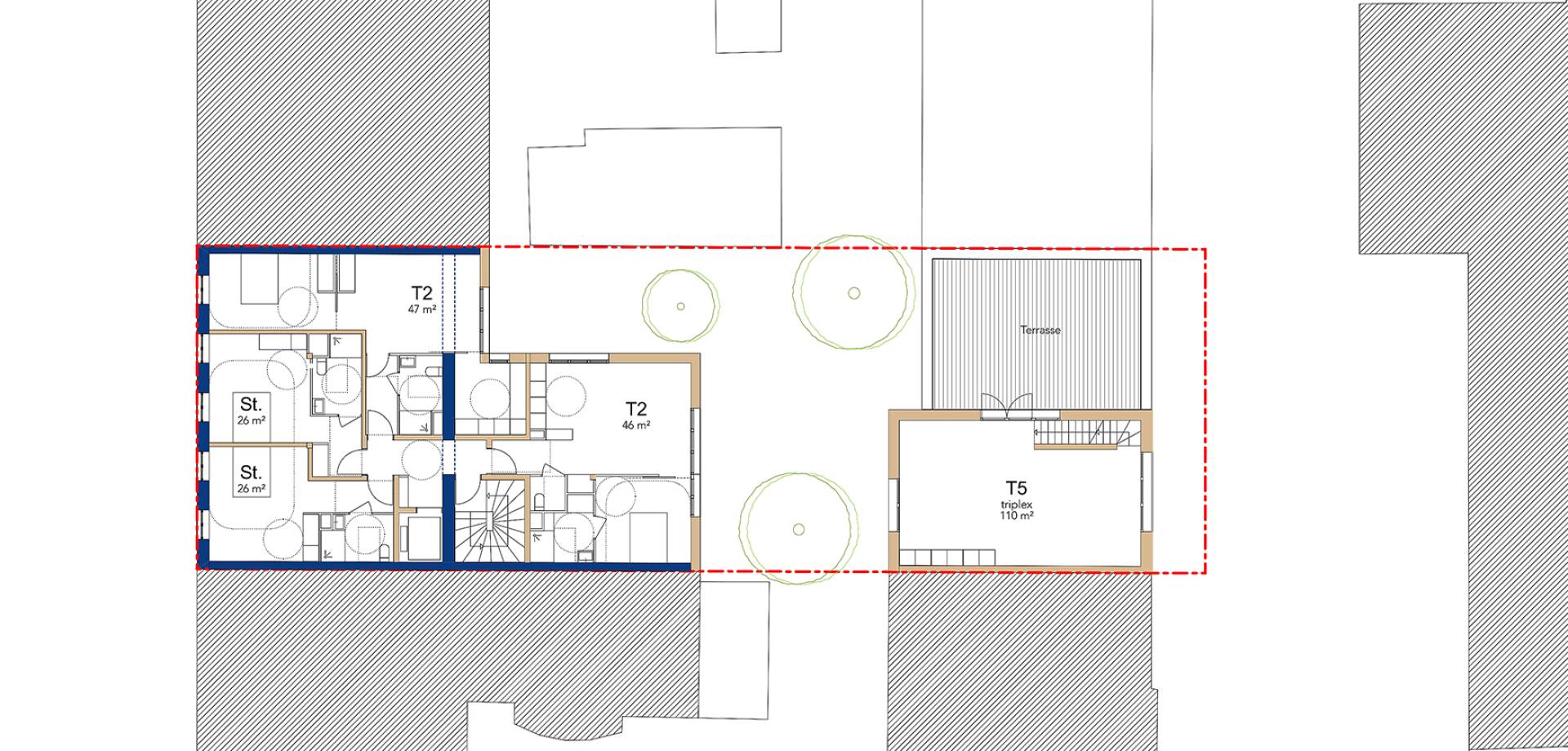 25 logements en restructuration et extension à Paris XIIe - Plan des étages bas