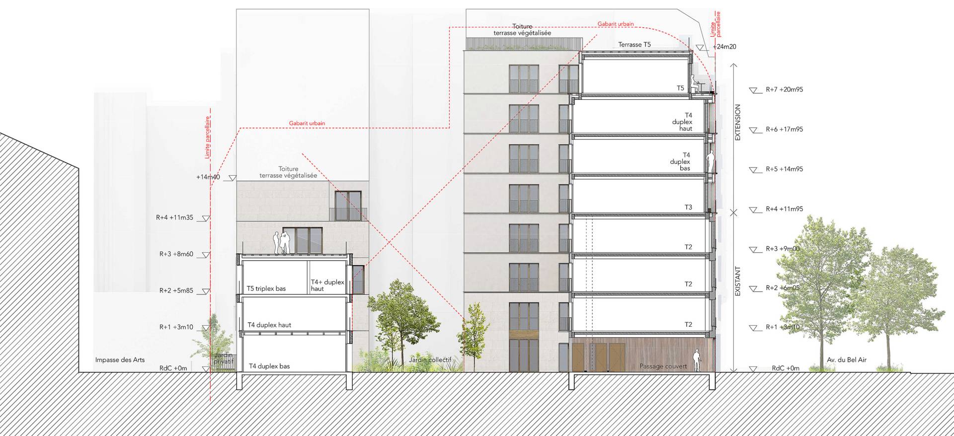 25 logements en restructuration et extension à Paris XIIe - Coupe transversale