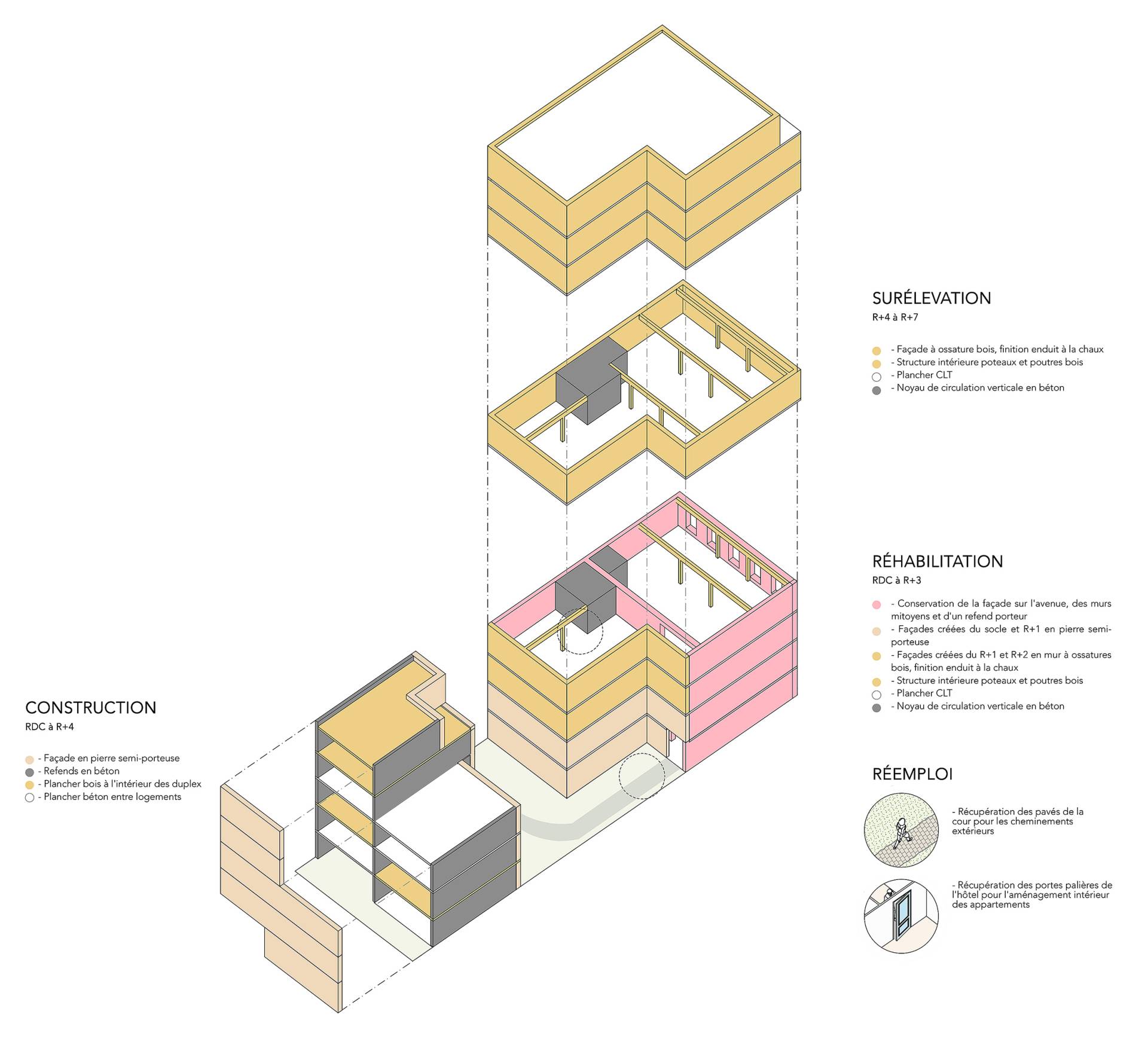 25 logements en restructuration et extension à Paris XIIe - Principes constructifs
