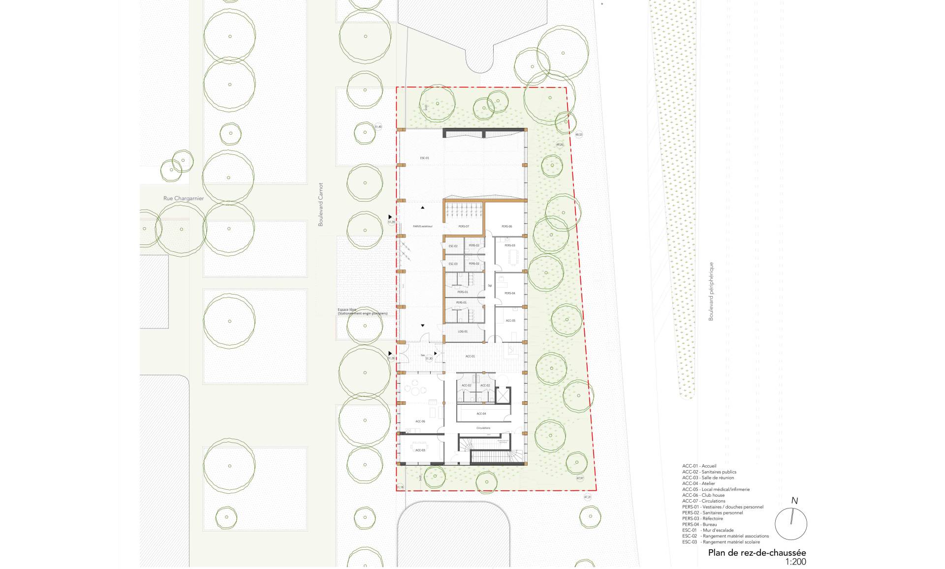 Equipement sportif à Porte de Vincennes Paris XIIe - Plan de rez-de-chaussée